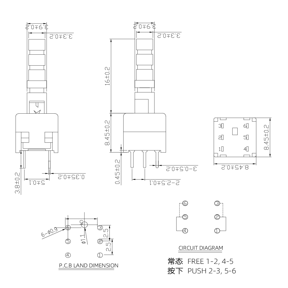 | Mechanical performance | Actuating Force | 250±50 gf |
