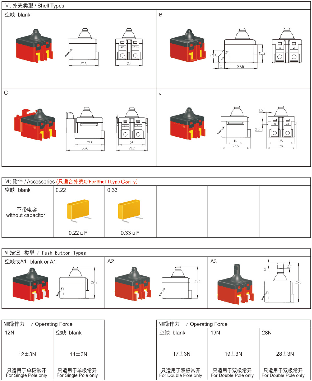 ◆ PB01 series are general type push-button switch, integrated dustproof, commonly for used in portable heavy dust power-tools such as: 100mm, 125mm and 150mm Angle Grinders, Polisher Grinders, Die Grinders, Sanders, etc.